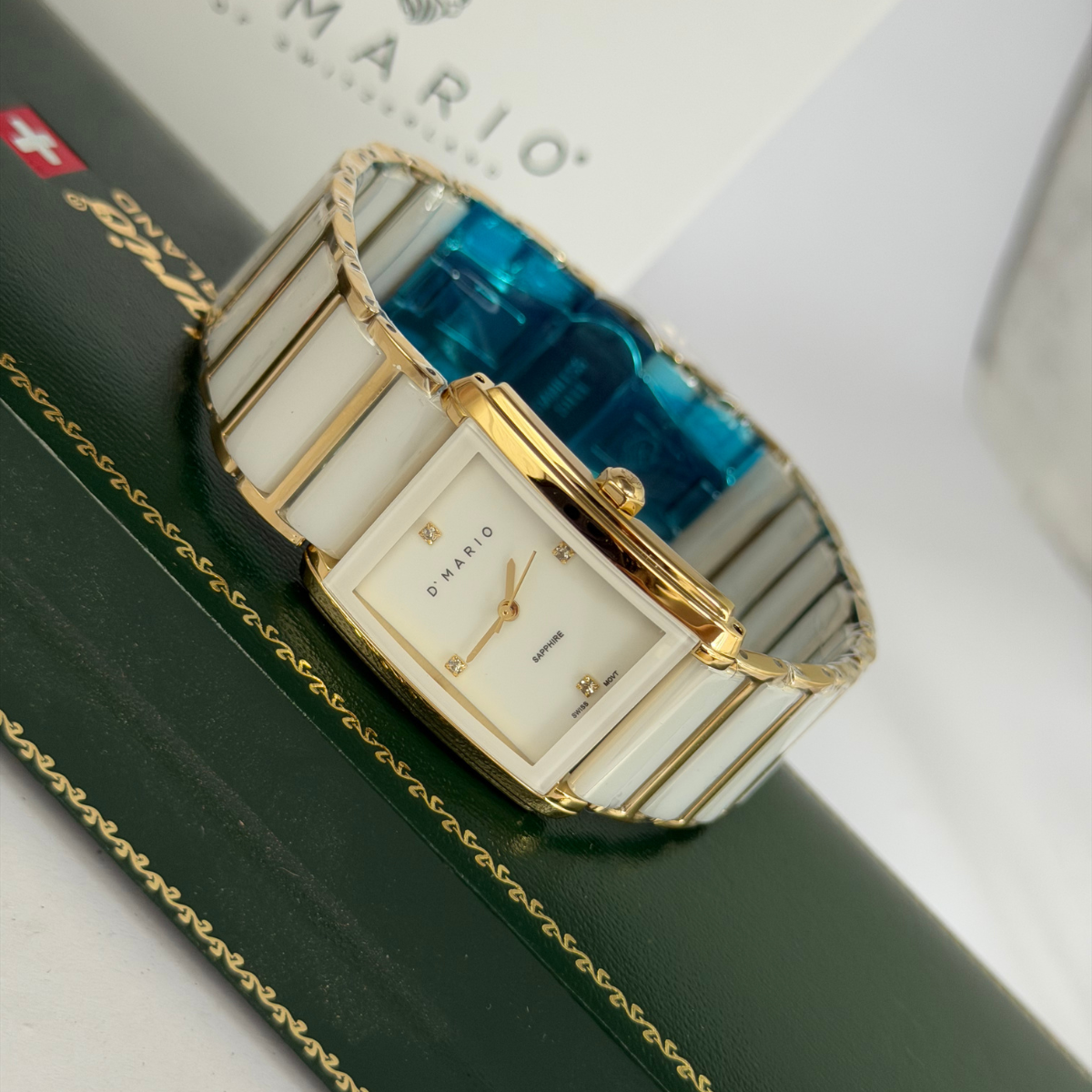 RELOJ D'MARIO CS5150L DAMA CERAMICA BLANCO DORADO