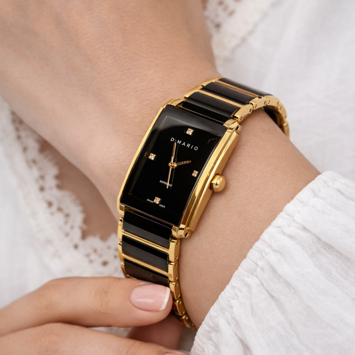RELOJ D'MARIO CS5150L DAMA CERAMICA NEGRO DORADO